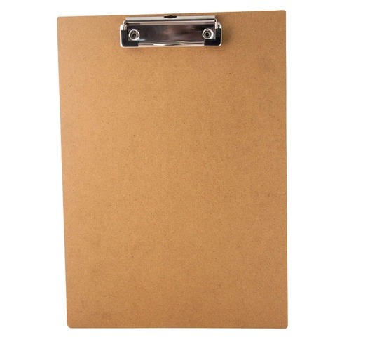 This brown fibreboard strong A4 size clipboard is designed to help anybody have a steady handwriting while making notes seated or standing. The clip board also provides enough space to place a pen or two for quick use. It is made of MDF